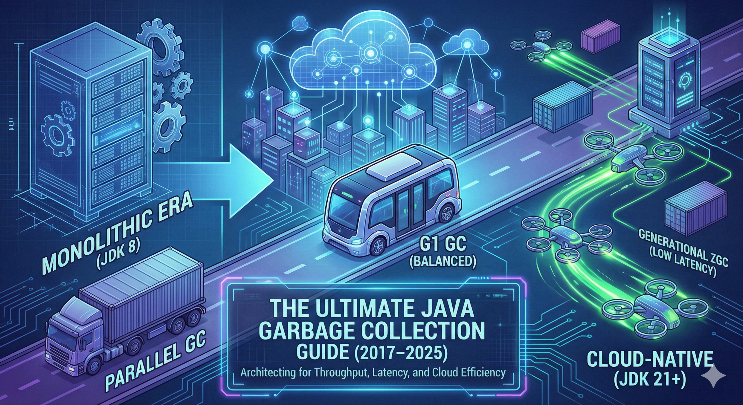 Memory management remains the primary factor for application performance in enterprise Java environments. Between 2017 and 2025, the ecosystem shifted from manual tuning to architectural selection. Industry data suggests that 60 percent of Java performance issues and 45 percent of production incidents in distributed systems stem from suboptimal Garbage Collection (GC) behavior. This guide provides a strategic framework for selecting collectors based on workload characteristics. It covers the transition from legacy collectors to Generational ZGC, analyzing trade-offs regarding throughput, latency, and hardware constraints with mathematical precision.